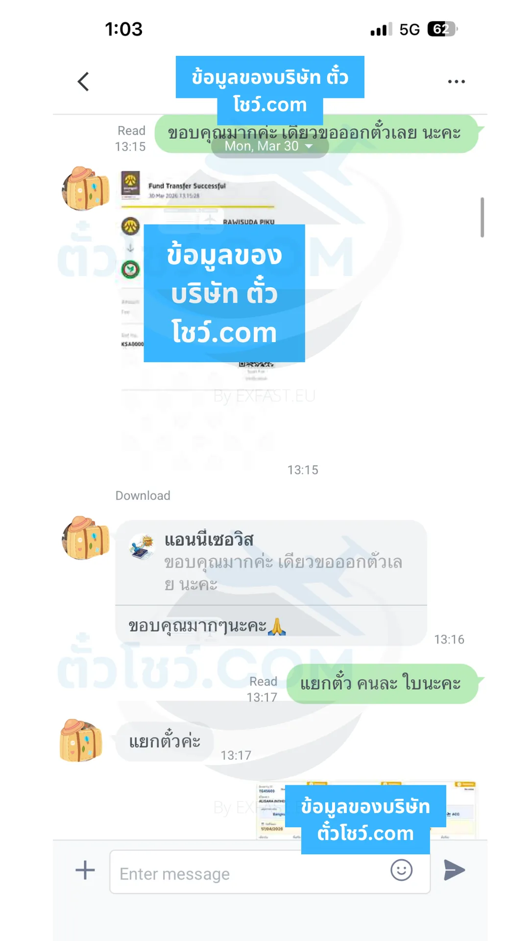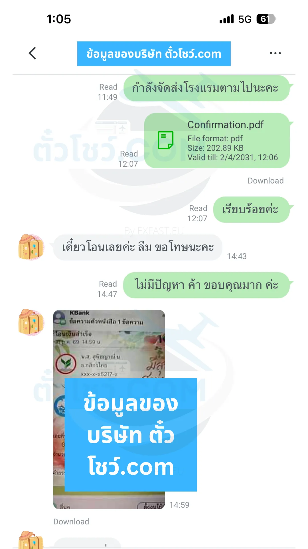 ทางทีมงาน ตั๋วโชว์.com ขอขอบพระคุณลูกค้าทุกท่านจากใจจริง ที่ไว้วางใจให้เราเป็นส่วนหนึ่งในทุกการเดินทางของคุณ ทุกฟีดแบ็กและคำติชมคือพลังสำคัญที่ทำให้เราพัฒนาบริการให้ดียิ่งขึ้นต่อไปครับ
